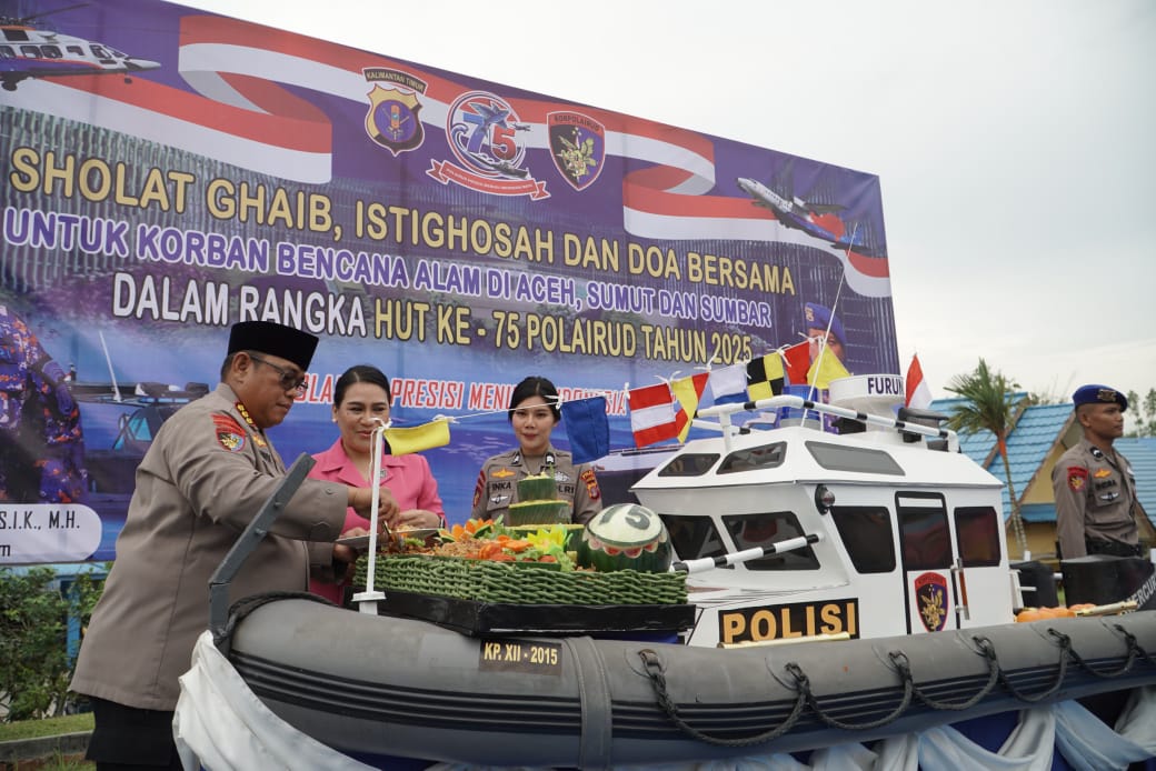 Direktorat Polisi Perairan dan Udara (Ditpolairud) Polda Kalimantan Timur menggelar syukuran dan doa bersama dalam rangka memperingati Hari Ulang Tahun ke-75 Kepolisian Perairan dan Udara, Senin (1/12/2025). Kegiatan yang awalnya dijadwalkan berlangsung di Hotel MaxOne Balikpapan tersebut dialihkan ke Mako Ditpolairud Somber sebagai bentuk penyesuaian terhadap arahan Kapolri dan Kakorpolairud terkait pelaksanaan peringatan HUT Polairud tahun ini.