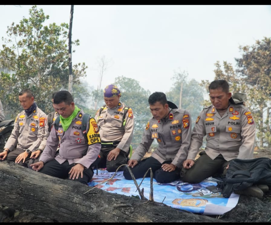 Dalam momen yang penuh harap, tim pemadam karhutla menggelar shalat dan doa bersama, memohon agar hujan segera turun untuk membantu memadamkan sisa-sisa kebakaran dan mengurangi jumlah titik hotspot di Rokan Hulu.