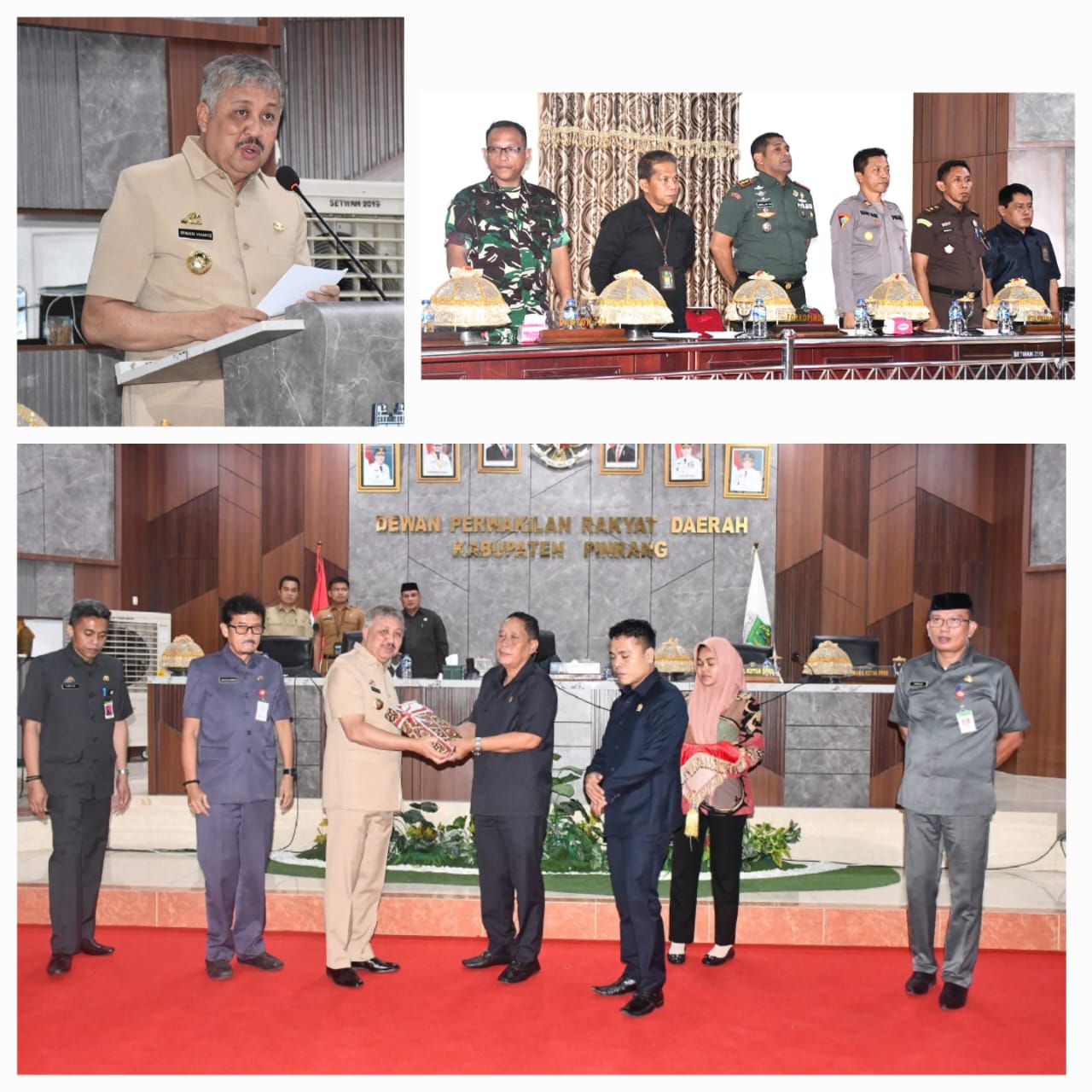 DPRD Kabupaten Pinrang menggelar rapat paripurna dengan agenda, penerimaan secara resmi Rancangan Peraturan Daerah (Ranperda) Rencana Pembangunan Jangka Menengah Daerah (RPJMD) Tahun 2025-2029, bertempat di ruang rapat paripurna DPRD Pinrang, Selasa (25/6/2025).