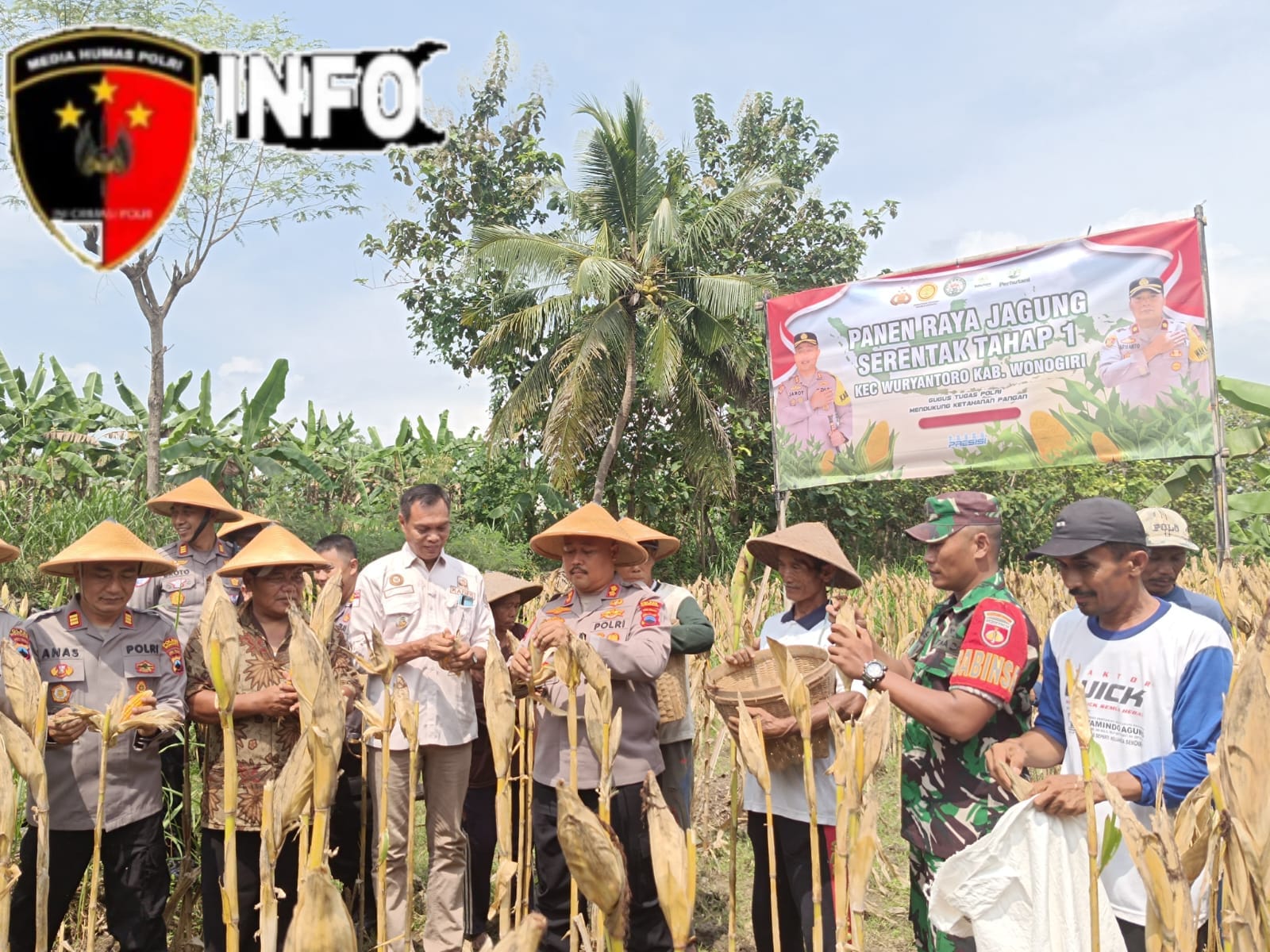 Dukung program ketahanan pangan nasional, Polres Wonogiri bersama Gugus Tugas Polri melaksanakan kegiatan Panen Raya Jagung Serentak Tahap 1 di Desa Pulutan Kulon, Kecamatan Wuryantoro, Kamis (22/5/2025).