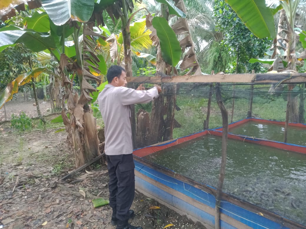 Dalam upaya mendukung program Ketahanan Pangan, anggota Polsek Betung Polres Banyuasin cek bibit ikan lele di Lahan milik Polsek Betung di Desa Lubuk Karet, Kecamatan Betung Kabupaten Banyuasin.