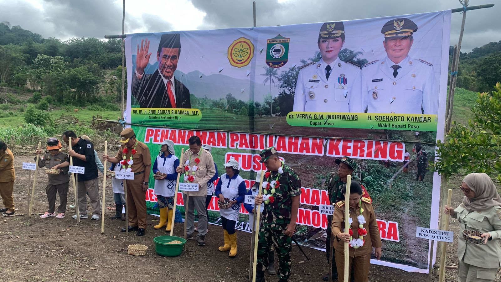 Setelah rangkaian sambutan, acara dilanjutkan dengan penanaman padi secara simbolis oleh para pejabat yang hadir, termasuk Dandim 1307/Poso. Kegiatan ini menandai komitmen bersama dalam mengoptimalkan pemanfaatan lahan kering untuk pertanian yang berkelanjutan.