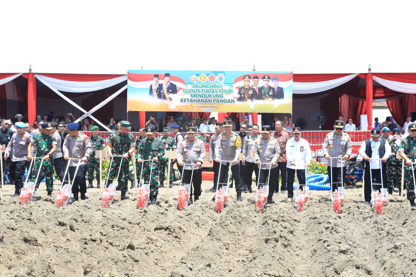 Kapolri Jenderal Pol. Listyo Sigit Prabowo bersama Panglima TNI Jenderal Agus Subiyanto menghadiri peluncuran atau launching Gugus Tugas Polri dalam mendukung ketahanan pangan.