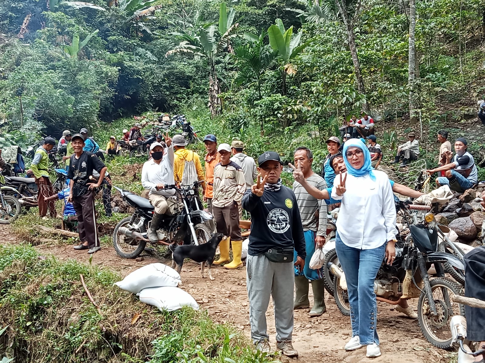 Dilokasi Gunung Betung, meskipun jalan setapak curam nan terjal, namun tidak menyurutkan niat Bunda Evi Susina untuk mengunjungi lokasi dibangunnya jalan untuk membagikan bantuan semen kepada warga yang mayoritas Bapak-Bapak saat bergotong royong membangun jalan setapak tersebut.