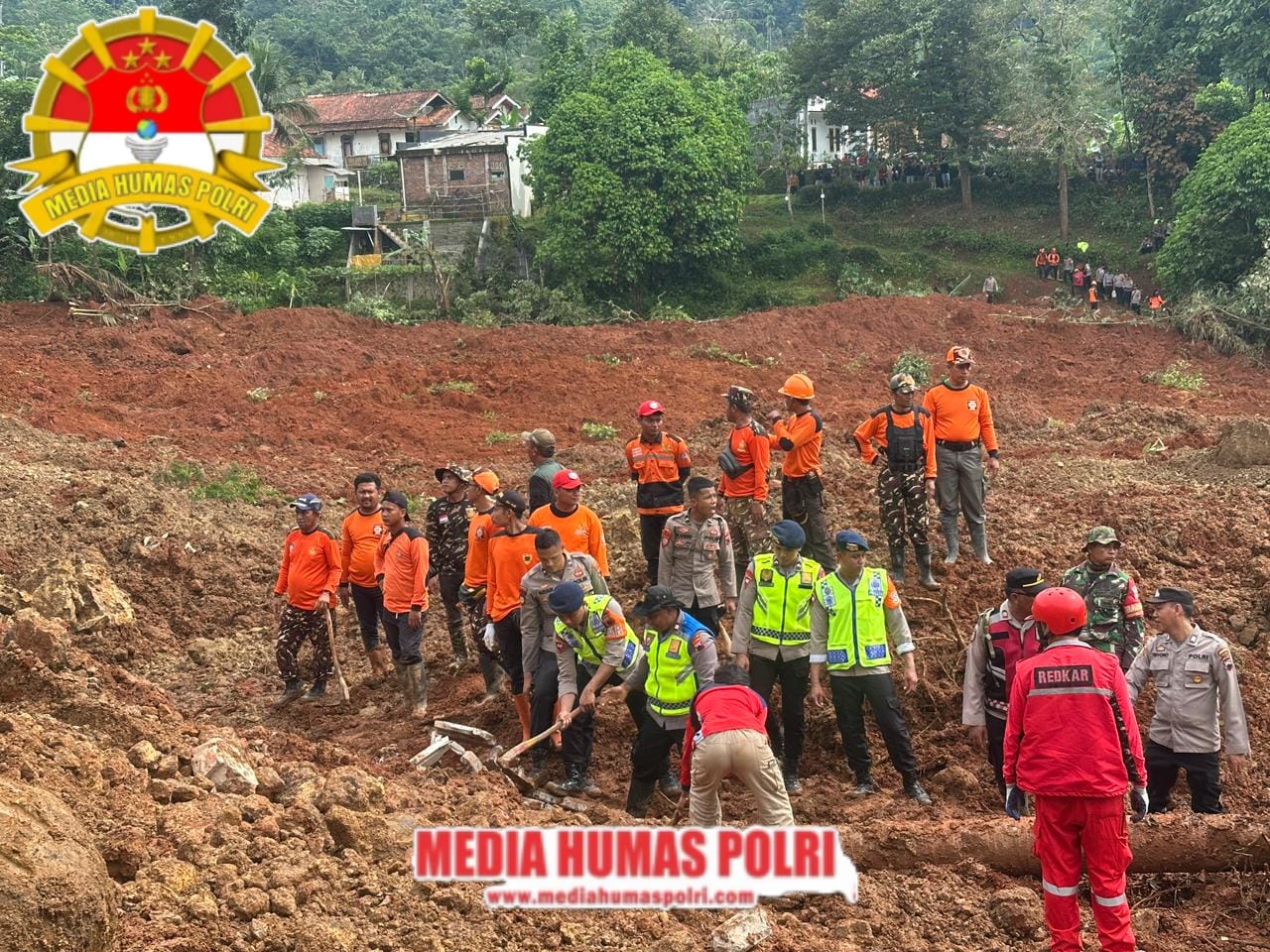Kapolresta Cilacap melaporkan bahwa jajaran Polri telah berada di lokasi sejak malam kejadian dan langsung melakukan koordinasi dengan Kalakhar BPBD Provinsi, Kepala BPBD Kabupaten Cilacap, Basarnas, serta perangkat desa. Karena kondisi gelap dan tanah yang tidak stabil, pencarian malam dibatasi dan operasi dilanjutkan kembali pada pukul 07.00 WIB hingga pagi ini. Untuk mempercepat pencarian, Polri mengerahkan 155 personel, terdiri dari 125 personel Polresta Cilacap dan 30 personel Brimob, serta menurunkan 4 anjing pelacak (K9) untuk mendeteksi titik-titik yang diduga menjadi lokasi korban tertimbun. Peralatan manual seperti cangkul dan senso digunakan karena medan sangat berat dan tebalnya timbunan tanah masih menghambat penggunaan alat berat.