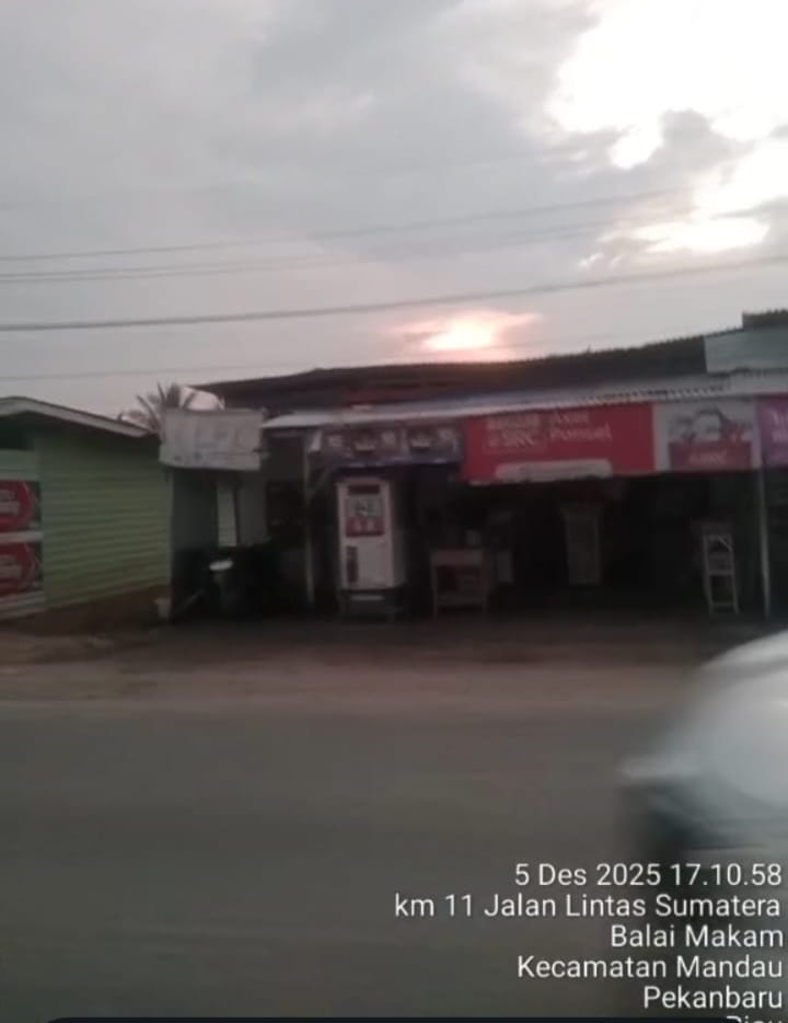 Foto kedua, yang direkam lebih awal pada 21 November 2025 pukul 14.07 WIB, menunjukkan markas operasi yang lebih tersembunyi namun tak kalah masif, di Jalan Duri – Dumai Bumbung.