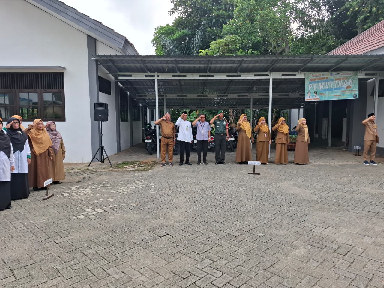 Danramil 1002-05/Pandawan Kapten Inf Fadilah bersama anggota Koramil mengikuti apel gabungan Forkopimcam Pandawan yang dilaksanakan di halaman Kantor Kecamatan Pandawan, Jalan Batuan Pandawan, Senin (20/10/2025).
