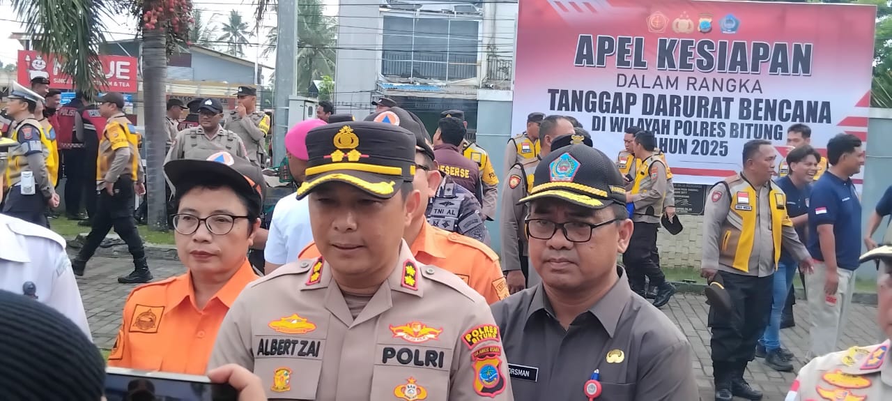 Kapolres Bitung AKBP Albert Zai, S.I.K., M.H. dalam amanatnya menegaskan pentingnya sinergi lintas instansi dalam menjaga kesiapsiagaan menghadapi bencana alam.