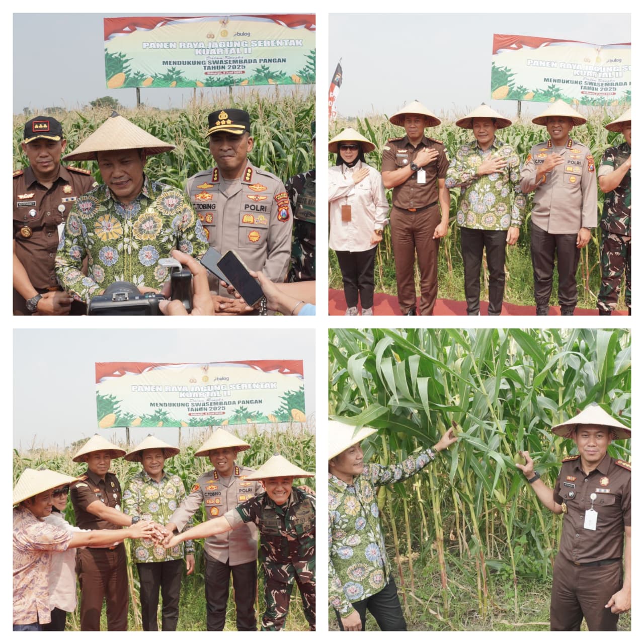 Forkopimda Sidoarjo mengikuti panen raya jagung serentak kuartal II, berlokasi di Desa Pangkemiri, Kecamatan Tulangan, Kabupaten Sidoarjo, Kamis (5/6/2025).