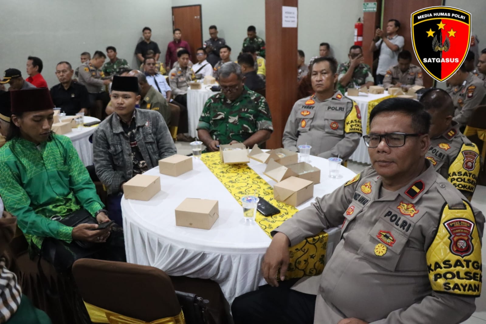 Acara tersebut dihadiri oleh berbagai elemen penting, antara lain Kabag Ops Polres Melawi AKP I Nengah Muliawan, S.H, Staf Ahli Bidang Pemerintahan Hukum dan Politik Dr. Daniel, SP., MM yang mewakili Bupati Melawi, LO Kodim 1205 Sintang, para Camat, Kapolsek, Danramil se-Kabupaten Melawi, para tokoh agama, tokoh masyarakat, tokoh adat, Ketua Pengurus Organisasi Masyarakat Kabupaten Melawi, kepala desa, Ketua BPD Kecamatan Nanga Pinoh, serta Bhabinkamtibmas jajaran Polres Melawi.