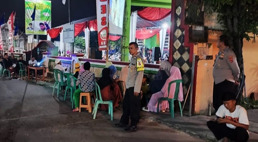 Personel gabungan Polsek Klari Polres Karawang melaksanakan pengamanan kegiatan Tabligh Akbar yang digelar di Desa Sumurkondang, Kecamatan Klari, Kabupaten Karawang, minggu malam (13/07/2025).