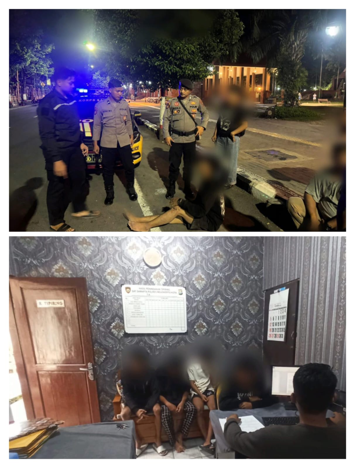 Tim Patroli Sat Samapta Polres Mojokerto Kota amankan remaja yang melakukan tawuran di Jln A. Yani, timur alun alun Kota Mojokerto, Minggu (12/01/25) Dini hari.