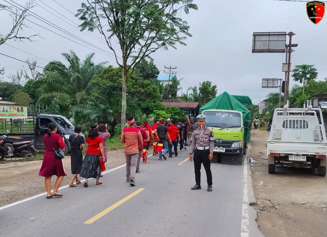 Kegiatan pengamanan ini dimulai sejak pukul 07.30 WIB, yang dipimpin oleh Kapospol Subsektor Simpang 4 Kayu Lapis, Bripka Narto Suyanto. Sejumlah personel Polisi terlihat aktif dalam mengatur arus lalu lintas guna mendukung kelancaran perarakan budaya yang menjadi bagian penting dari perayaan adat tersebut.
