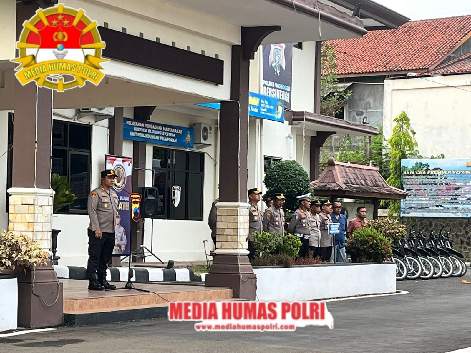 Apel dipimpin langsung oleh Kapolres Wonogiri AKBP Wahyu Sulistyo, S.H., S.I.K., M.P.M., dan diikuti oleh seluruh jajaran personel Polres Wonogiri.