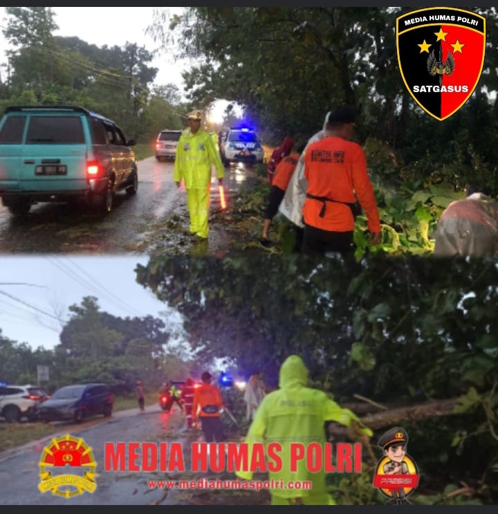 Mendapat laporan dari warga, personel Sat Lantas Polres Lampung Timur segera menuju lokasi untuk melakukan penanganan. Dengan dibantu oleh masyarakat sekitar, mereka bekerja cepat menggunakan alat pemotong dan peralatan lainnya guna menyingkirkan batang pohon serta ranting yang menghalangi jalan.