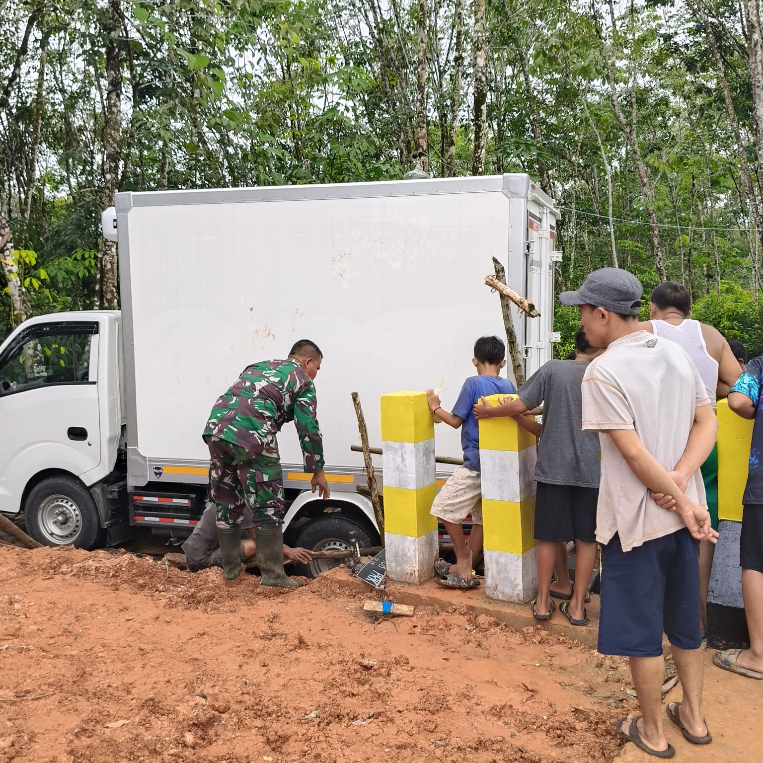 Seperti yang dilakukan oleh Babinsa Koramil 1001-05/Lampihong Kodim 1001/HSU-BLG Sertu Laode Arman Musu bersama-sama warga lainnya secara spontanitas membantu mobil warga yang terperosok saat melewati jembatan darurat. Berlokasi di Desa Lajar, Kecamatan Lampihong, kabupaten Balangan. Selasa (17/12/2024)