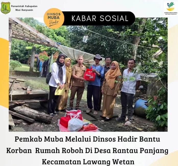 Gerak cepat tanggap dari pemkab Musi Banyuasin memberikan bantuan sosial kepada keluarga Bapak Asmitin Korban Dapur Rumah Roboh di Desa Rantau Panjang Kecamatan Lawang Wetan.