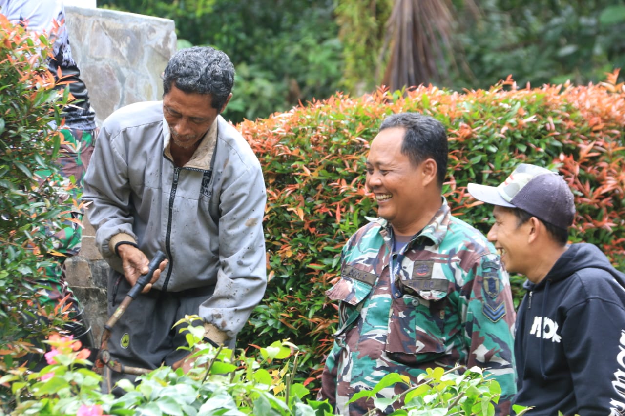 Pada moment pelaksanaan Kegiatan TMMD 123 Satgas Kodim 0905/Bpp Personilnya bersama Warga Jemaat melaksanakan pembersihan sekitar Bangunan Gereja dan termasuk halaman Gereja