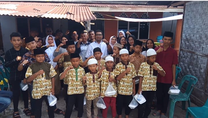 Tuan rumah Samsul Bahri dikesempatan tersebut juga berbagi, menyantuni anak yatim sebagai wujud rasa sukur dan berbagi. Pemberian santunan kepada warga sekitar yang dikuti juga pemberiannya oleh ketua AWDS Surya Darma dan kumpulan wartawan lainnya.