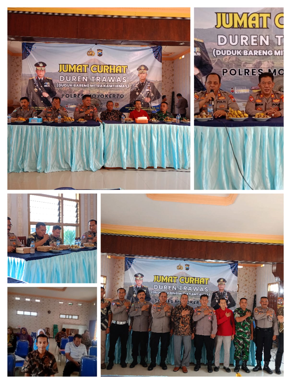Polres Mojokerto kembali menggelar “Giat Jum’at Curhat” di Desa Segunung Kecamatan Dlanggu Kabupaten Mojokerto Kegiatan rutin Kepolisian Resort Mojokerto Polda Jawa Timur ini sangat membawa dampak luar biasa di tengah masyarakat dimana kegiatan ini sarat dengan muatan positif yang terkandung di dalam nya.Disamping sebagai ajang silaturrahmi antara Institusi Kepolisian dengan masyarakat juga sebagai sarana informasi,edukasi,problem solving dan lain sebagainya.