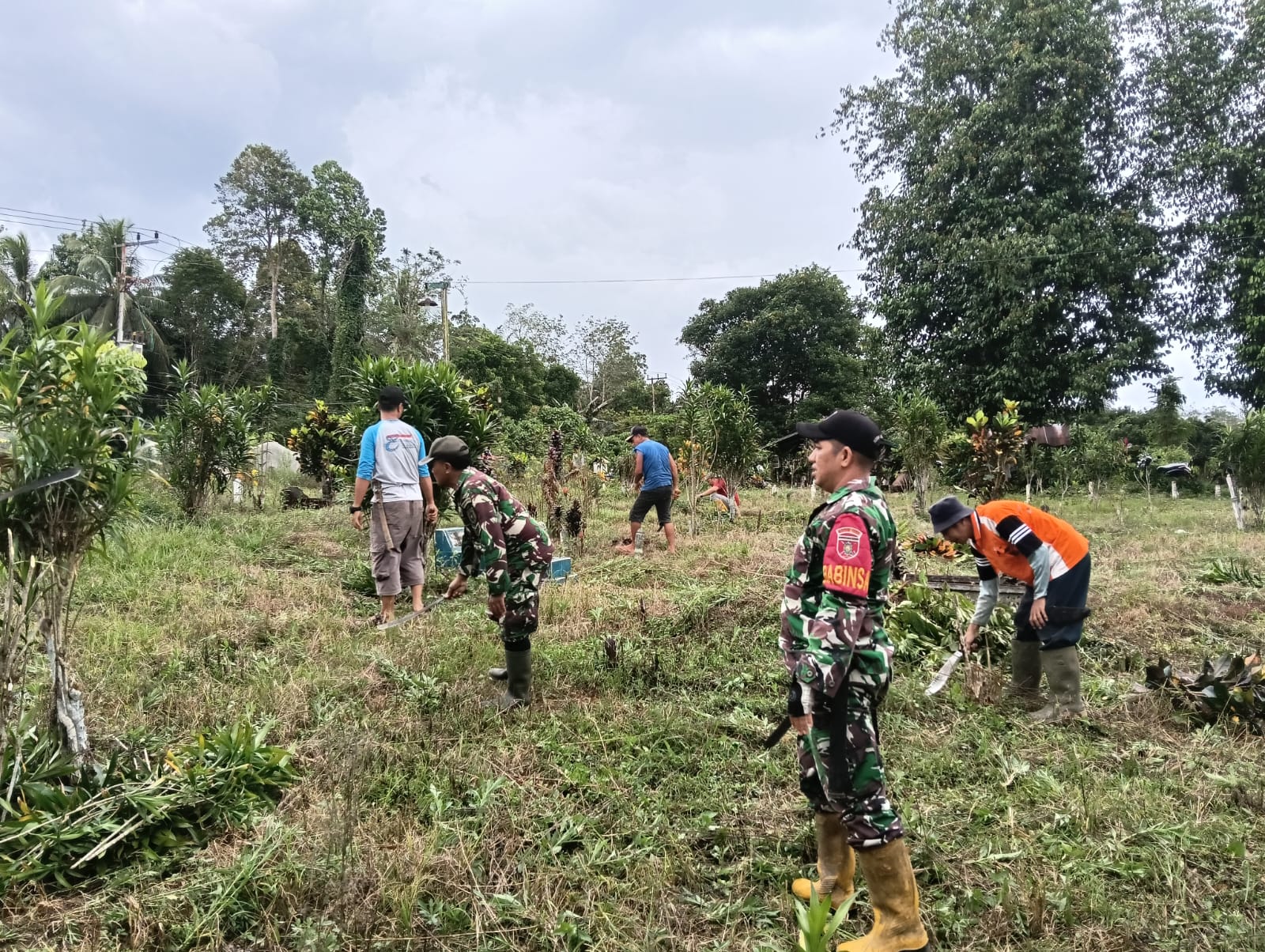 Koramil 1002-07/Batu Benawa bersama warga Desa Haliu, Kecamatan Batu Benawa, Kabupaten Hulu Sungai Tengah (HST) melaksanakan kegiatan gotong royong pembersihan makam/kubur muslimin pada hari Jum’at, 21 Maret 2025.