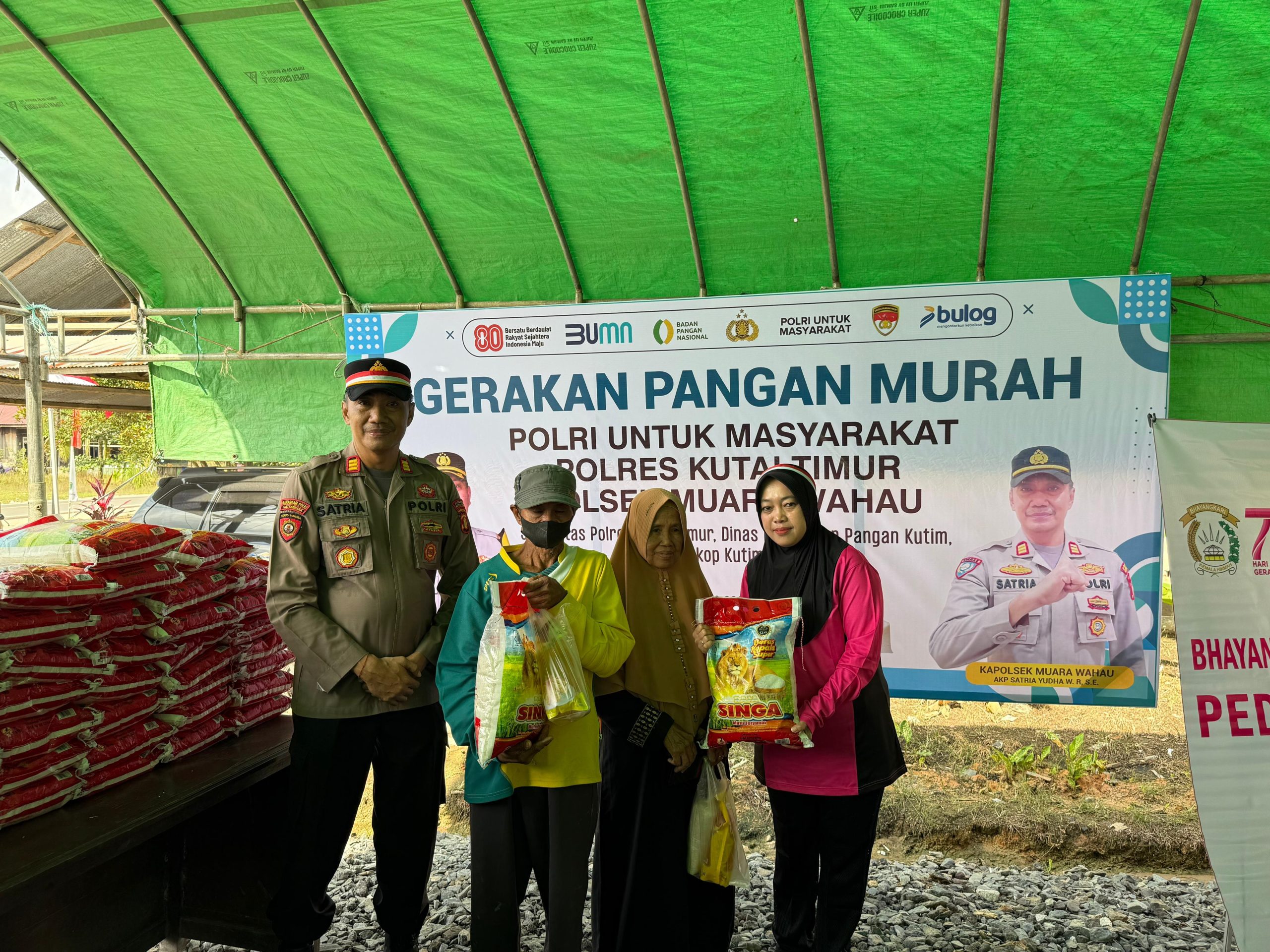 Polsek Muara Wahau menggelar Gerakan Pangan Murah (GPM) yang dipimpin langsung Kapolsek AKP Satria Yudha WR. Dalam kegiatan ini, disalurkan 100 paket bahan pokok (bapok) murah untuk masyarakat.