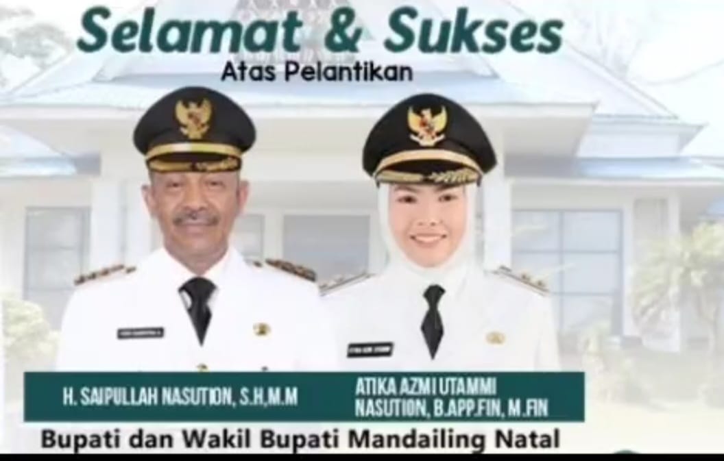 Gubernur Sumatera Utara (Sumut) Muhammad Bobby Afif Nasution melantik Saipullah Nasution dan Atika Azmi Utammi, sebagai Bupati dan Wakil Bupati Mandailingnatal (Madina). Kepada keduanya, Bobby Nasution mengingatkan agar menjadikan kesejahteraan masyarakat menjadi landasan bekerja.