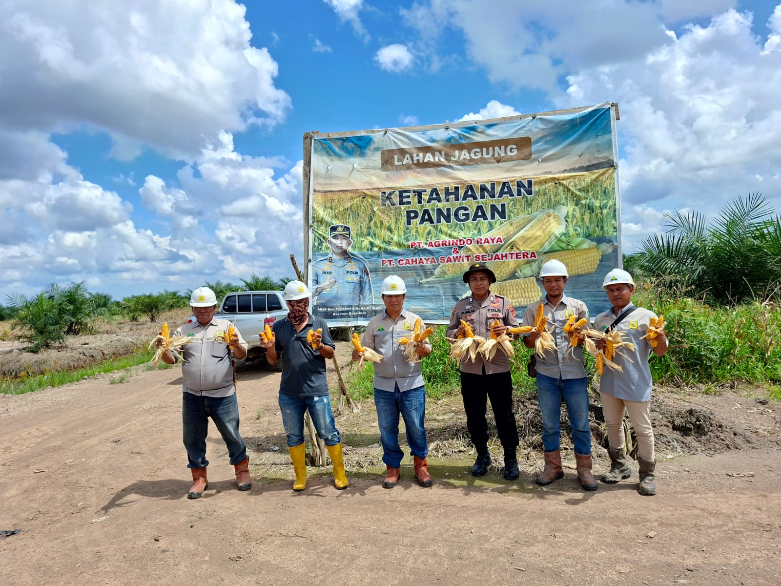 Melalui gugus tugas Ketahanan Pangan (Ketapang) Polres Banyuasin melalui Polsek Makarti Jaya, sukses Panen jagung di Lahan PT. Agrindo Raya Desa Upang Kecamatan Air salek Kabupaten Banyuasin, Senin (16/6).