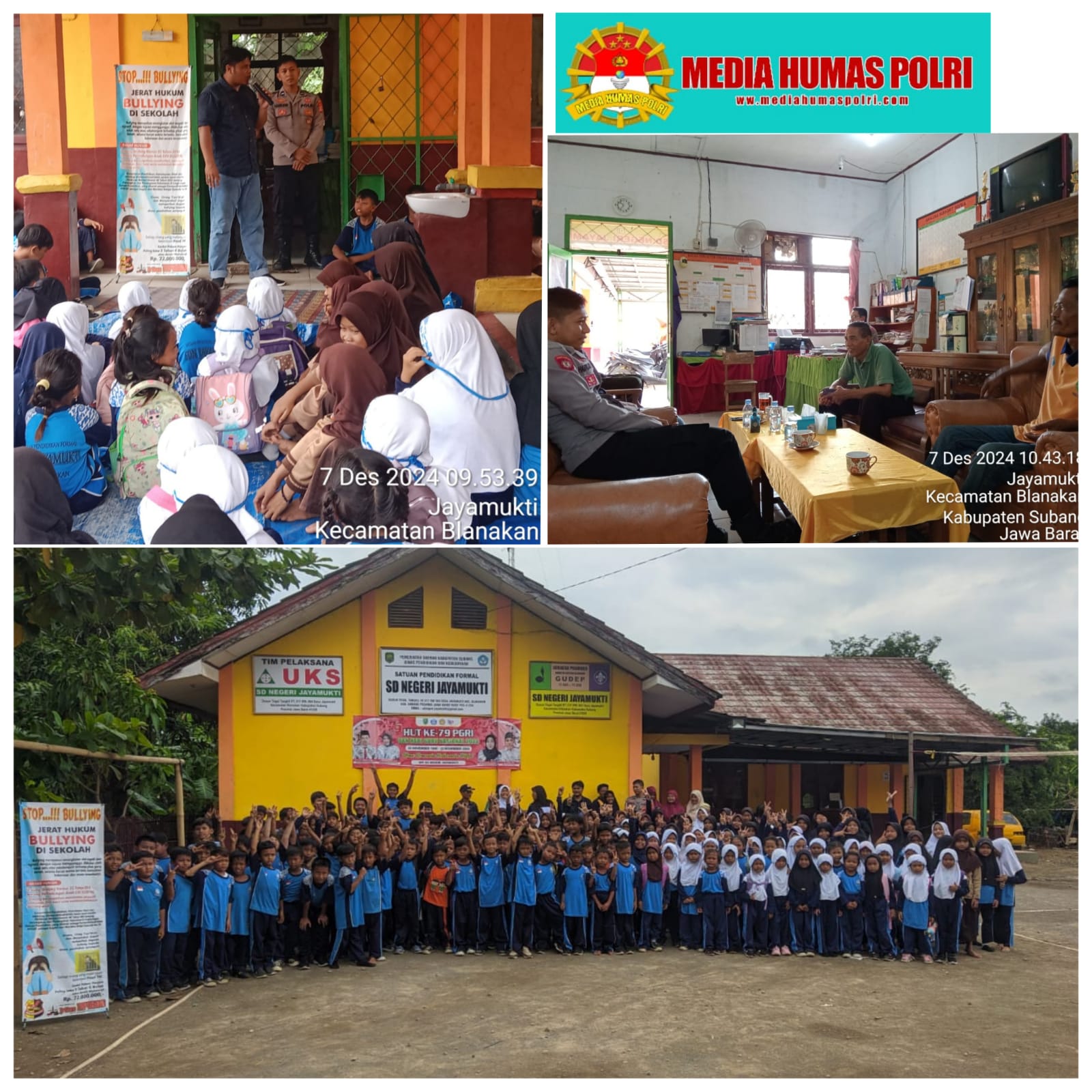 Sabtu,(7/12/2024) dari jajaran polsek Blanakan datang mengunjungi Sekolah Dasar Negeri Jayamukti untuk memberikan edukasi dan mengingatkan kembali tentang perudungan tersebut, Jangan sampai terjadi dan terulang kembali kejadian bullying di Sekolah Dasar Negeri Jayamukti.