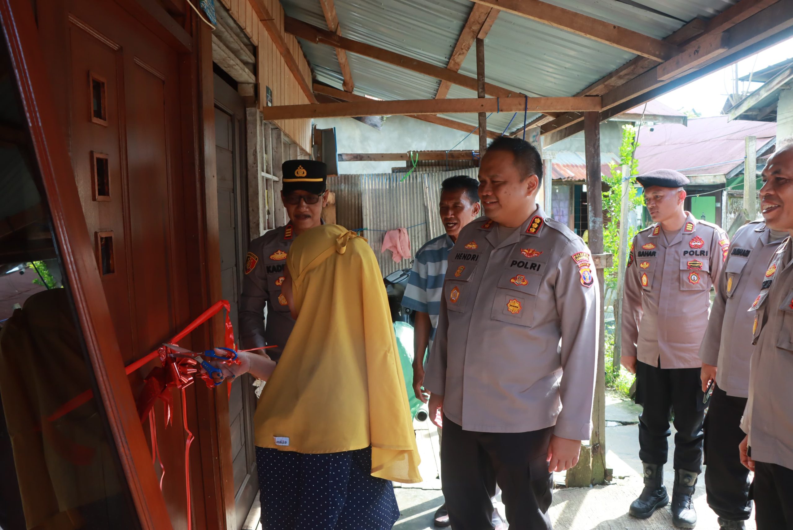 Dalam suasana haru dan penuh kebersamaan, Kapolresta Samarinda secara simbolis meresmikan rumah yang telah selesai direnovasi dengan melakukan pemotongan pita dan penyerahan kunci kepada Ibu Fitriah selaku penerima bantuan.
