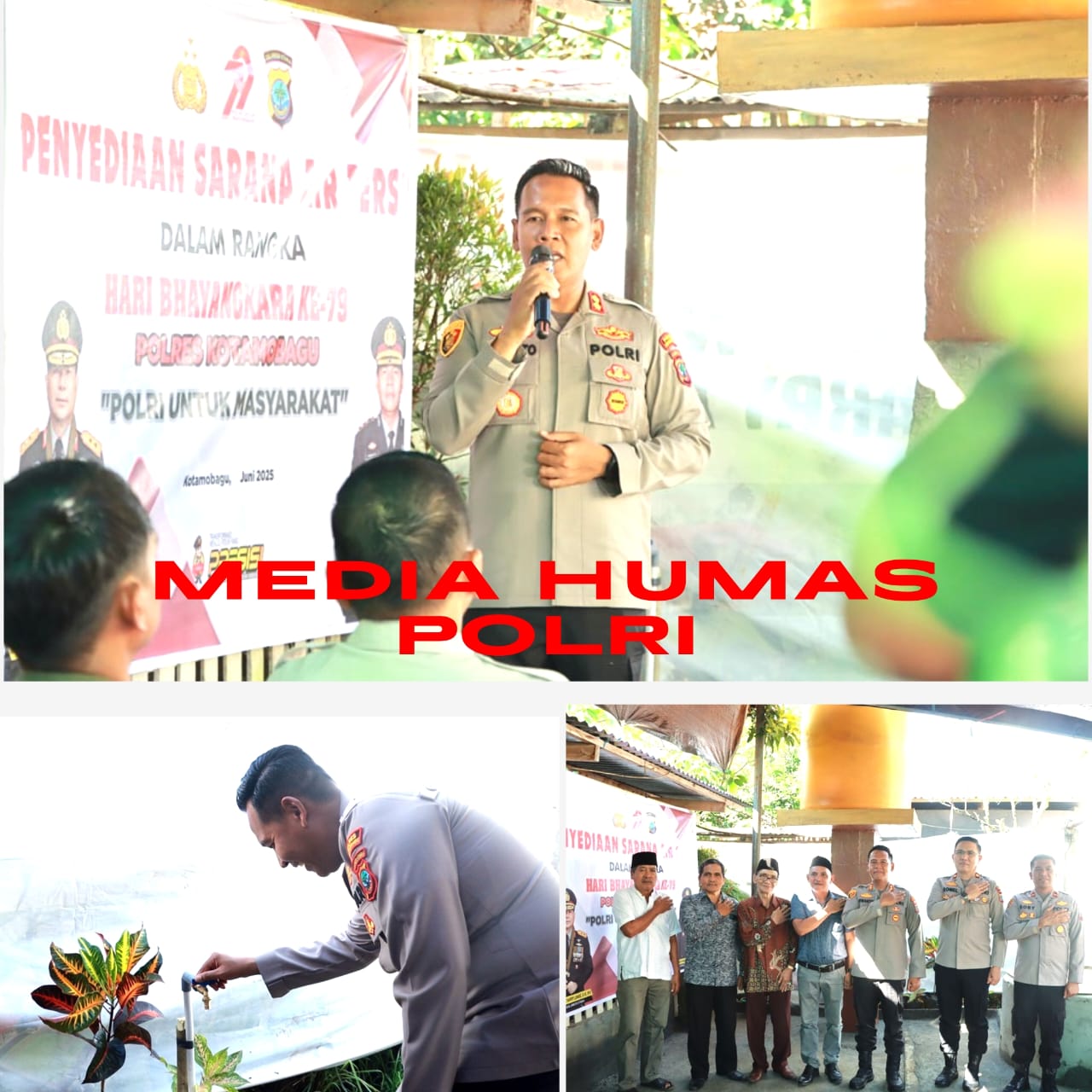Warga Dusun III Desa Otam Kecamatan Passi Barat mendapat bantuan sarana air bersih dari Polres Kotamobagu dalam rangka Hari Bhayangkara ke-79 pada Sabtu (28/6/2025).