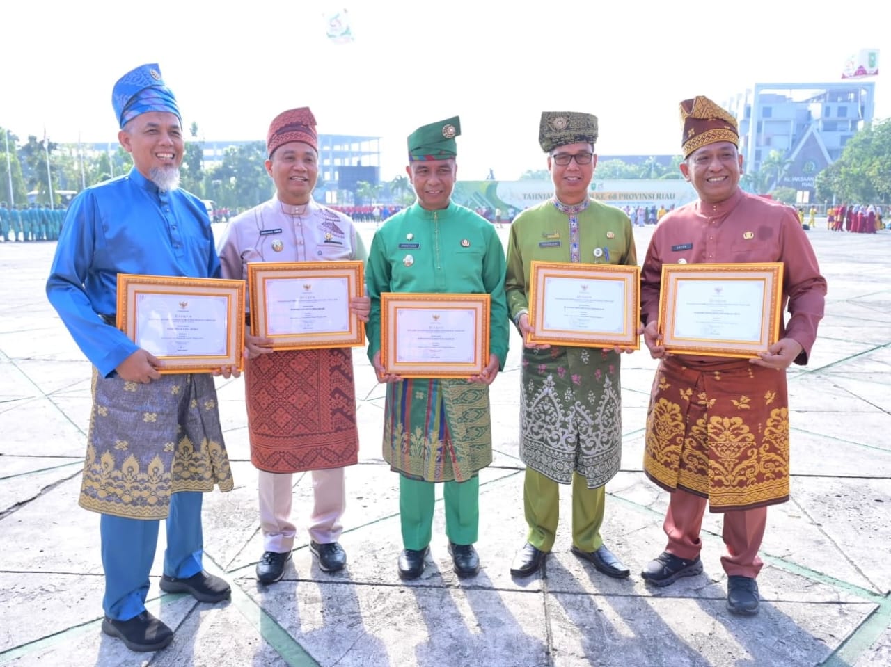 Bupati Bengkalis diwakili Asisten Perekonomian dan Pembangunan Sekretariat Daerah Kabupaten Bengkalis, Toharuddin, menghadiri upacara peringatan Hari Ulang Tahun (HUT) Ke-68 Provinsi Riau, Sabtu, 9 Agustus 2025 di Halaman Kantor Gubernur Riau.