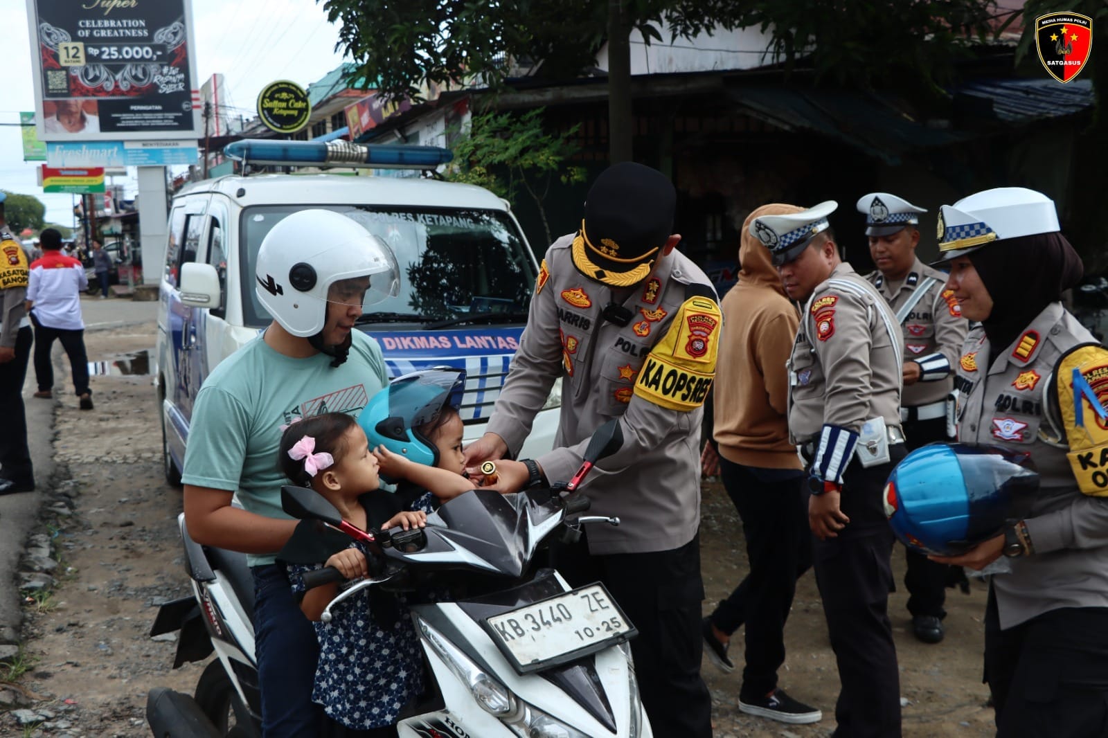 Memasuki hari ke-4 pelaksanaan Operasi Zebra Kapuas 2025, Polres Ketapang terus menggelar kegiatan yang bersifat edukatif dan humanis dalam upaya meningkatkan keselamatan berlalu lintas di wilayah Kabupaten Ketapang. Pada giat kali ini, Kapolres Ketapang memimpin langsung personel yang terlibat operasi untuk membagikan helm gratis kepada pengendara sepeda motor yang kedapatan membawa anak kecil tanpa menggunakan perlengkapan keselamatan pada Kamis (20/11/2025).