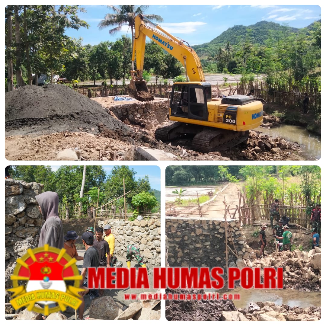 TMMD Ke-123 Kodim 1628/Sumbawa Barat Dihari Ke-8 kerahkan alat untuk menggeser tanah di sasaran jembatan dan untuk kebut pembangunan jembatan, Dusun Jorok Tiram Desa Batu Putih Kecamatan Taliwang Kabupaten Sumbawa Barat. Kamis (27/02/25).