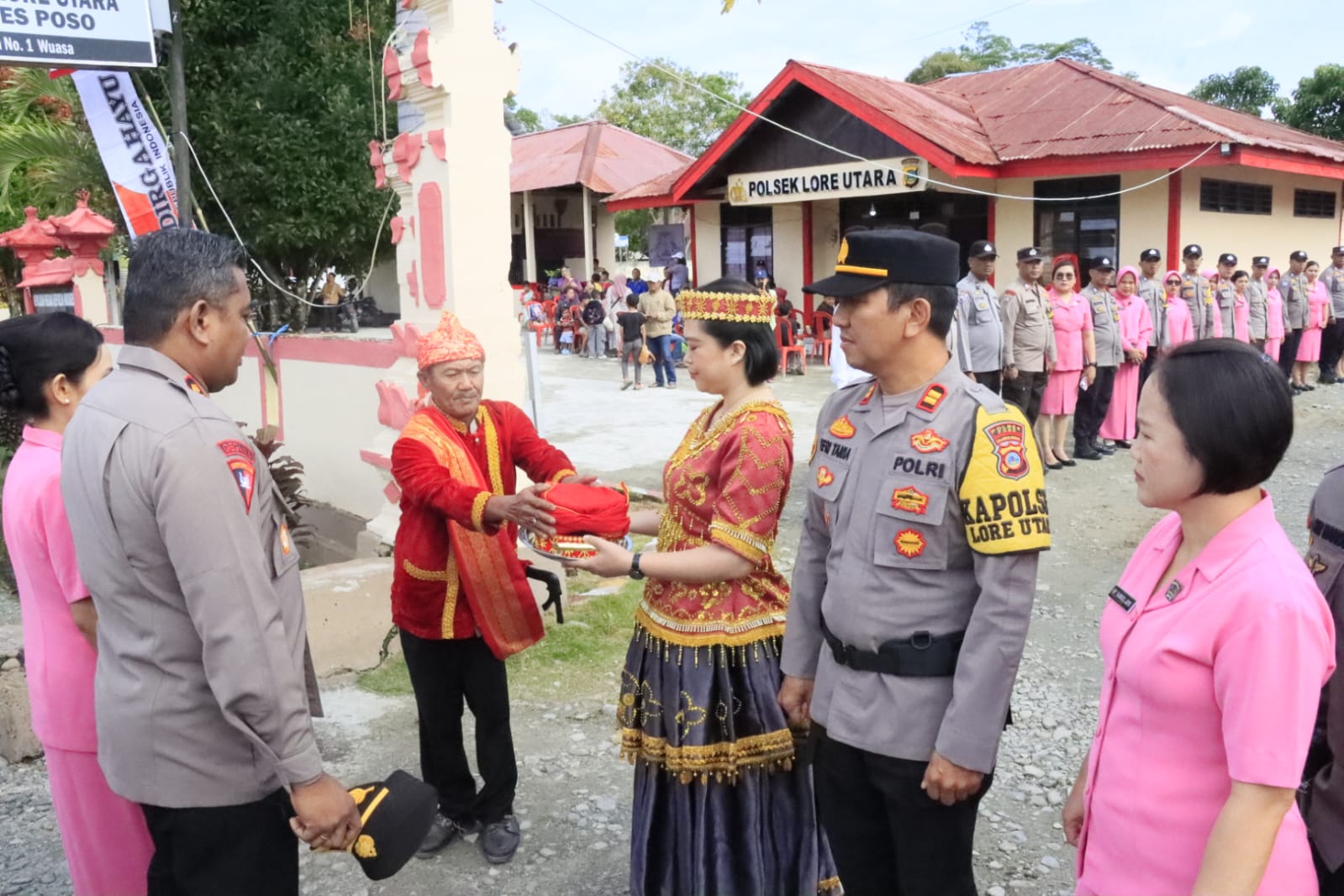 Setibanya di sana, rombongan Kapolres disambut dengan tarian adat Poso, Pekasiwia, sebagai bentuk penghormatan dan ucapan selamat datang dari warga setempat.