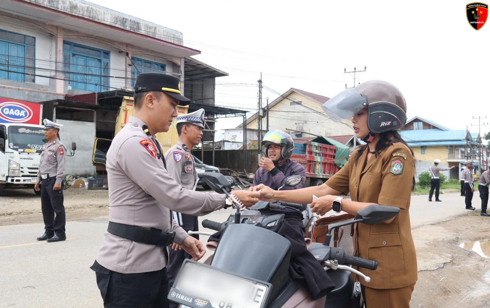 Tak hanya itu, petugas juga secara aktif mengimbau pengendara agar selalu memakai helm berstandar SNI, melengkapi surat-surat kendaraan bermotor, dan mematuhi rambu lalu lintas demi keselamatan bersama.