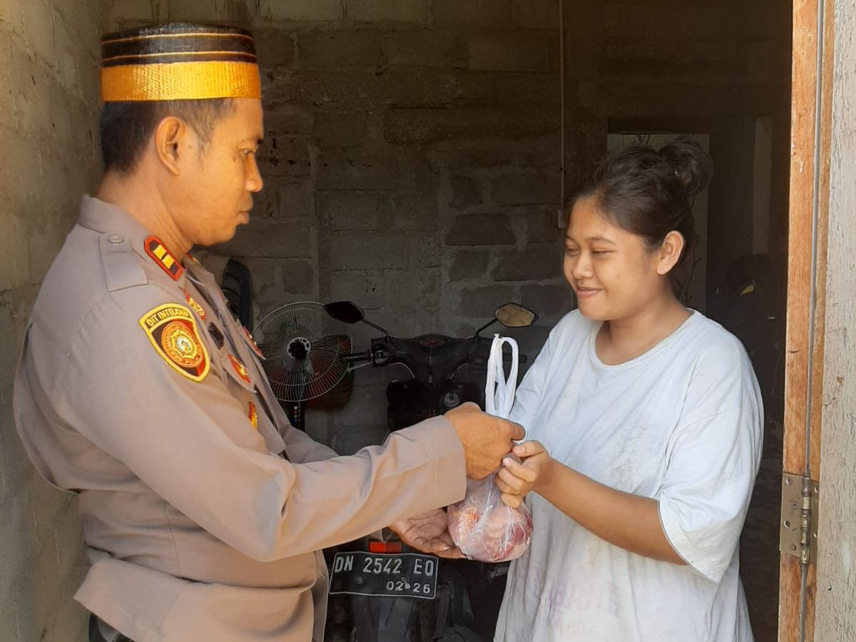 Tak hanya menyerahkan dari Mako Polsek, Kapolsek Poso Pesisir Selatan IPTU Arkam AR, S.H., turun langsung ke rumah-rumah warga untuk membagikan daging kurban. Warga menyambut hangat kehadiran aparat yang datang membawa pesan damai sekaligus berkah di hari suci tersebut.