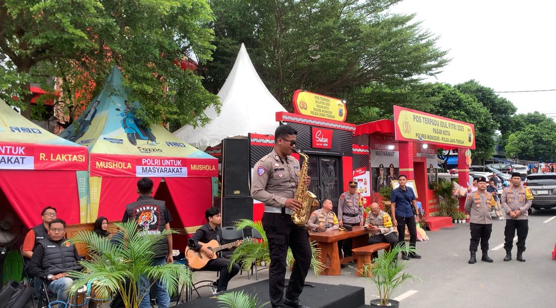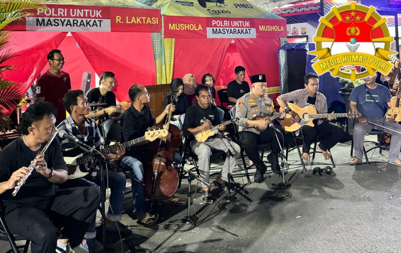 Berbagai cara dilakukan jajaran Polres Wonogiri dalam melayani para pemudik dan masyarakat yang melaksanakan aktifitas ngabuburit. Salah satunya dengan memberikan hiburan bagi pemudik yang beristirahat dan masyarakat yang ngabuburit di sekitaran Pos Terpadu Pasar Kota Wonogiri, Kamis sore (27/3/2025).