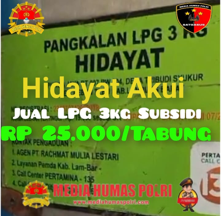 HIDAYAT ,saat di konfirmasi ,pangkalan miliknya mendapatkan kiriman tabung dari PT Rachmat Mulia Lestari sejumlah 500tabung / Minggu ,lebih lanjut ,, HIDAYAT ,mengatakan iya saya pernah jual Seharga Rp 25.000( Du puluh lima ribu rupiah ) per tabung .