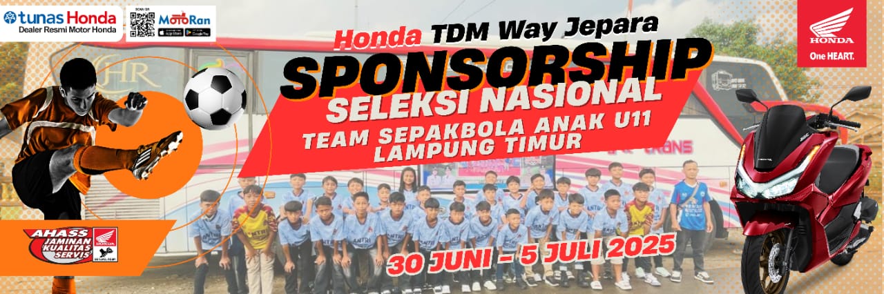 Sebagai dealer Honda terbaik di Lampung, TDM Honda Way Jepara dengan bangga menjadi salah satu sponsor dalam Event Liga Anak Indonesia 2025 yang akan diselenggarakan pada tanggal 1–4 Juli 2025 di Lapangan Pancoran, Jakarta.