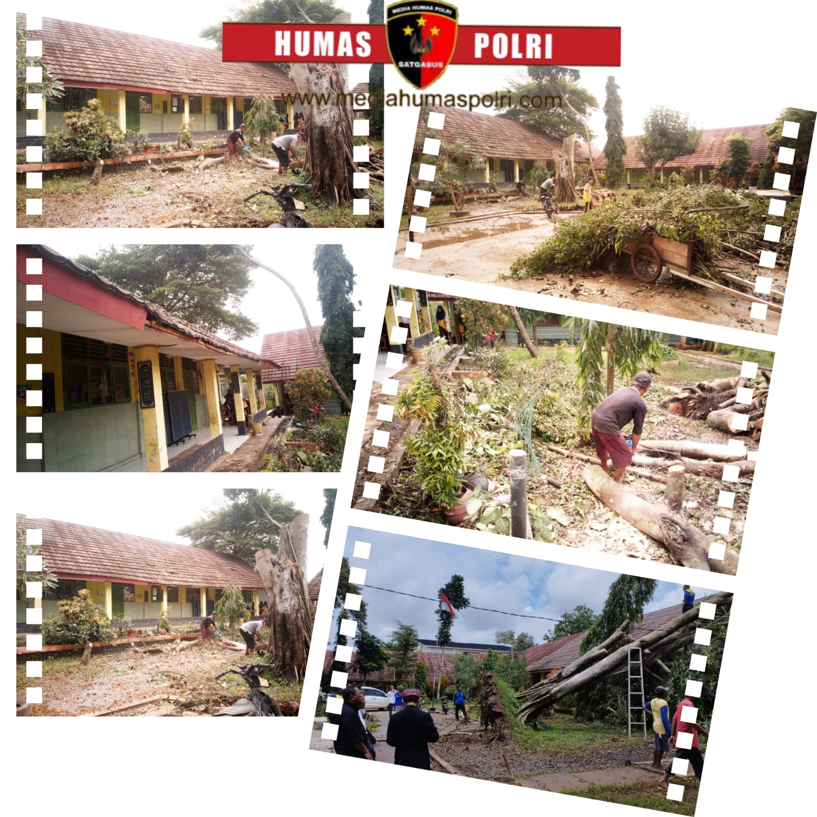Dadang, S.Pd mengatakan bahwa pohon tumbang tersebut sedang dibersihkan oleh pekerja, demi kenyamanan anak anak belajar. (H2R)