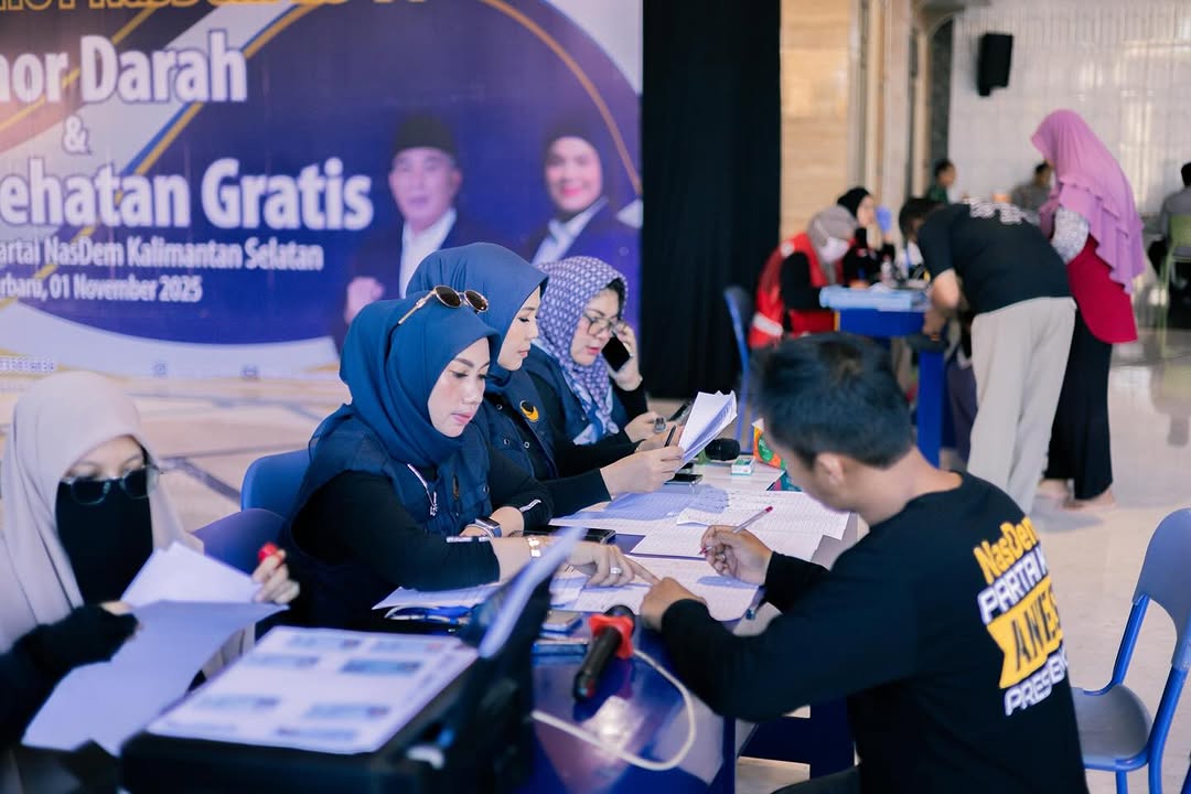 Dalam rangka memperingati Hari Ulang Tahun (HUT) ke-14 Partai NasDem, Dewan Pimpinan Wilayah (DPW) Partai NasDem Kalimantan Selatan menggelar kegiatan donor darah dan pemeriksaan kesehatan gratis bagi masyarakat. Acara ini berlangsung di kediaman Ketua DPW Partai NasDem Kalsel, H. Mansyur, di Banjarbaru pada hari Senin 3 November 2025, dengan dihadiri ratusan warga dan kader partai.