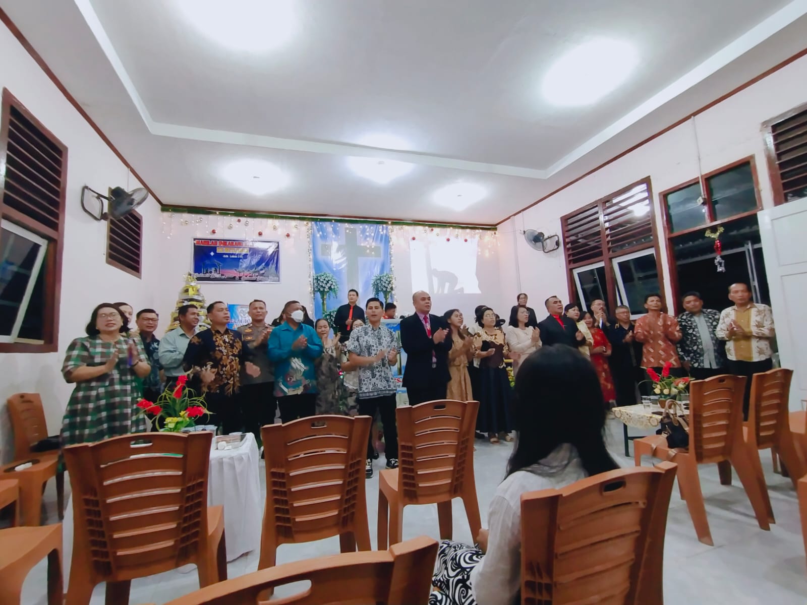 Ibadah yang dipimpin oleh Pendeta Rolex Malaha, SE, S.Th, dengan tema renungan dari kitab Lukas 2:15 yang mengisahkan tentang perjalanan gembala ke Betlehem setelah menerima kabar baik dari malaikat.