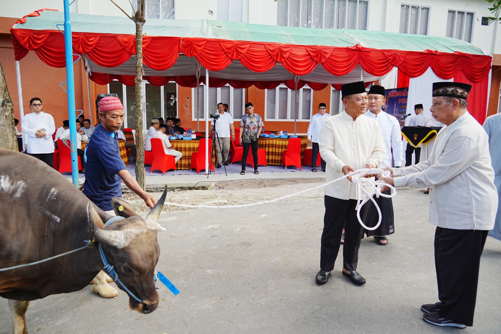 Kapolda Kaltim menyerahkan langsung hewan kurban secara simbolis. Kapolda Kaltim mengatakan tahun ini, jumlah hewan kurban yang terkumpul sebanyak 94 ekor terdiri dari 92 ekor sapi dan 2 ekor kambing.