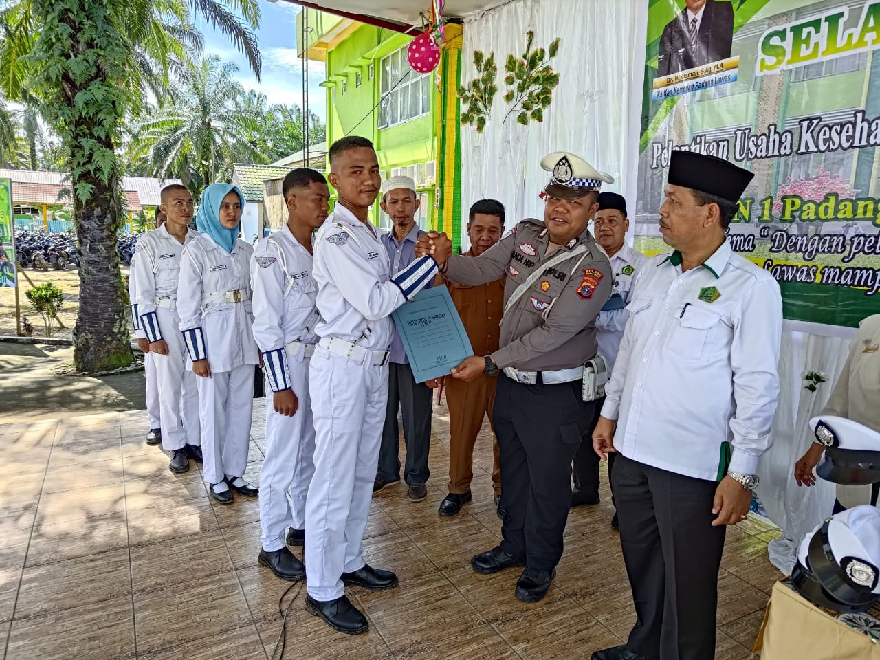 Personil Satuan Lalu Lintas Kepolisian Resor Padang Lawas (Satlantas Polres Palas) menghadiri Upacara pelantikan Patroli Keamanan Sekolah (PKS) Madrasah Aliyah Negeri (MAN) 1 Palas Plus Keterampilan dan Riset berlangsung khidmat yang digelar, Senin, (14/04/2025). Yang dimulai pukul 09.00 wib hingga selesai.
