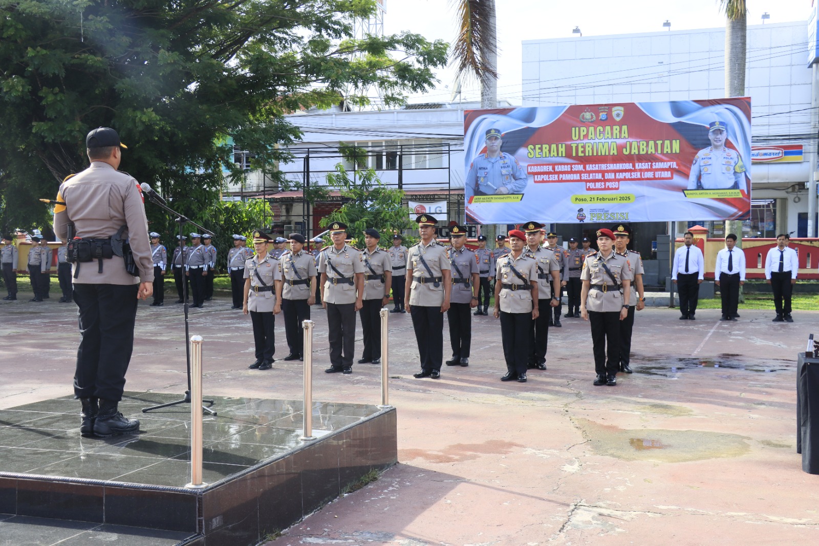 Upacara Serah terima Jabatan di Jajaran Polres Poso,dipimpin langsung oleh Kapolres Poso AKBP Arthur Sameaputy,S.I.K bertindak selaku Inspektur Upacara di halaman Mako Polres Poso.Jumat,21/02/2025