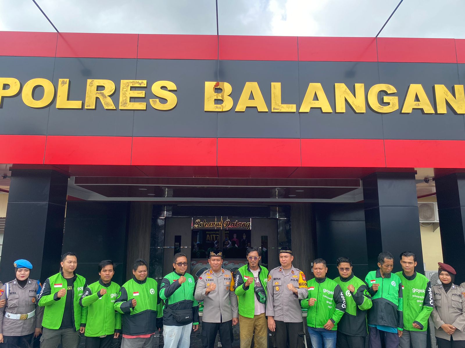 Polres Balangan menggelar kegiatan pembagian paket sembako kepada Komunitas ojek online (ojol) dan Ojek Konvensional di teras lobby Mako Polres Balangan, setelah Pelaksanaan Sholat Gaib dan Doa Bersama di Mushola Annur Polres Balangan, Senin (01/09/2025).