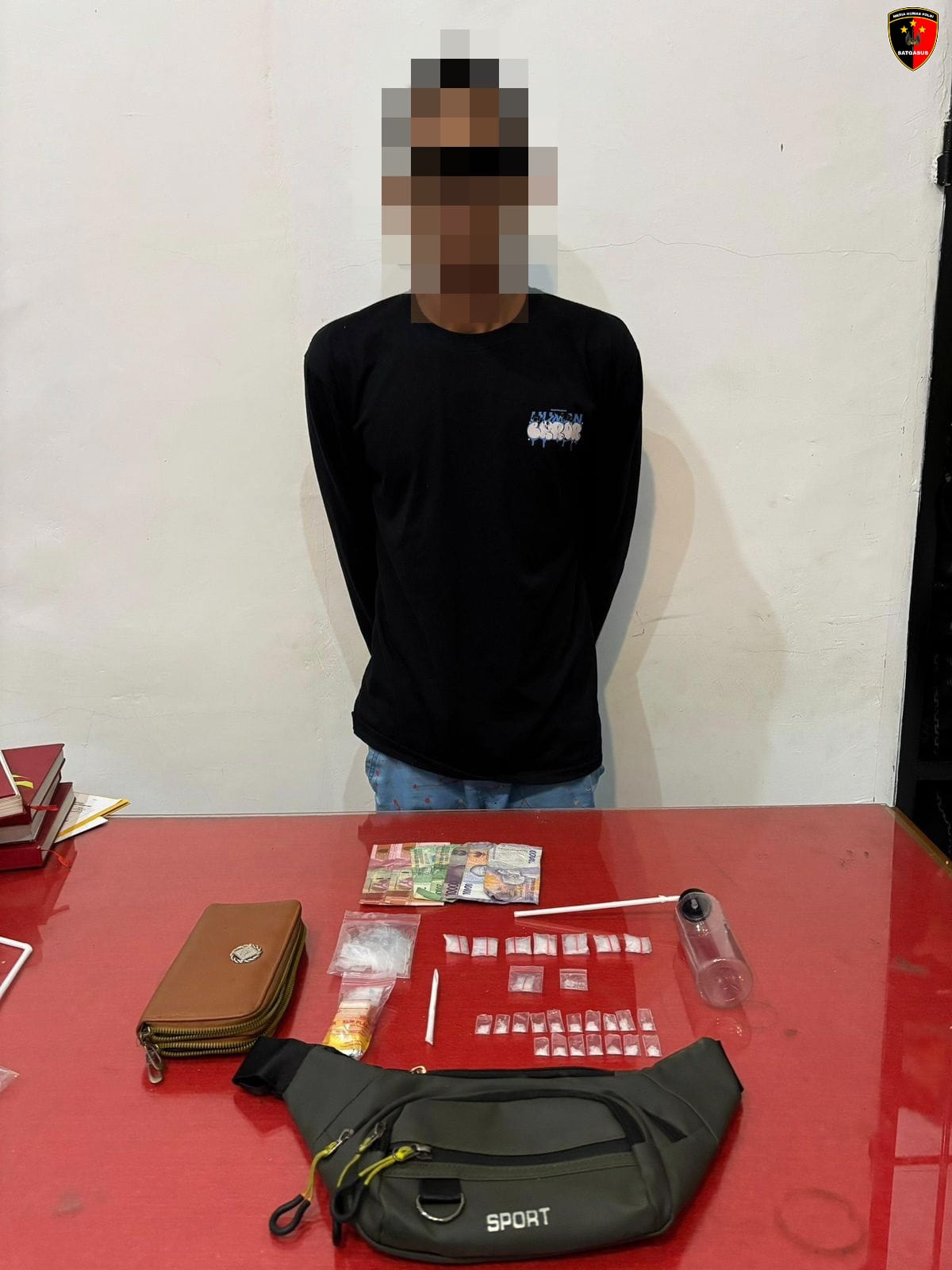 “ Dari informasi ini, petugas kami langsung melakukan penyelidikan dan berhasil mengamankan pelaku JU didalam kamar perumahan tersebut. Saat dilakukan pemeriksaan badan yang disaksikan oleh perangkat desa setempat, petugas mengamankan dari tangan pelaku barang bukti berupa 26 bungkus klip plastik kecil yang berisi serbuk kristal diduga narkotika jenis sabu dengan berat total 10,97 gram, 1 buah bong, 1 buah sendok yang terbuat dari pipet, serta uang tunai sebesar 270.000 rupiah. ” ujar IPTU Bagus, Selasa (25/11/2025) Pukul 11.00 Wib.