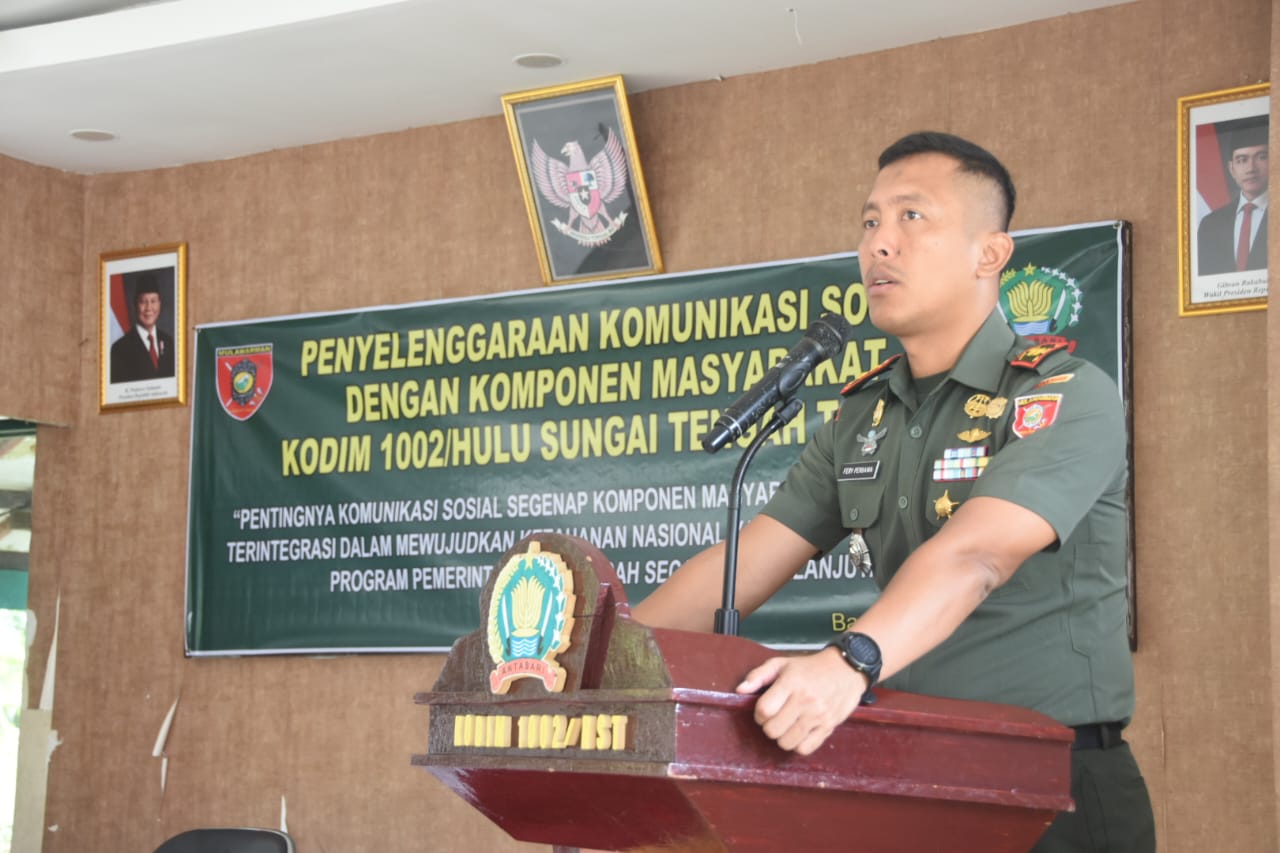 Dalam sambutannya, Dandim 1002/HST Letkol Inf Fery Perbawa menyampaikan bahwa Komsos ini merupakan upaya Kodim untuk memelihara dan memperkuat partisipasi prajurit TNI AD bersama komponen masyarakat.