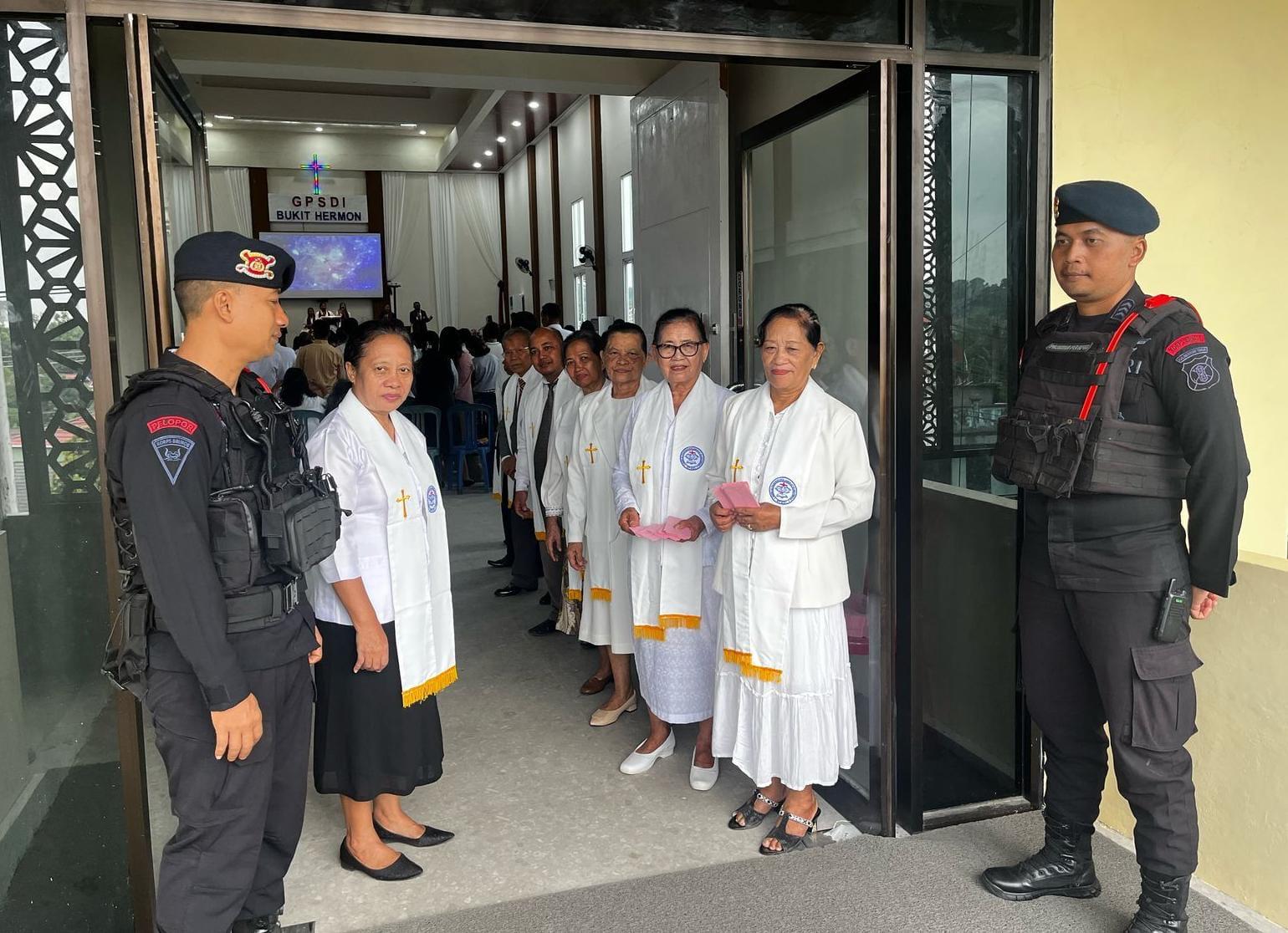 Dalam kegiatan tersebut, personel Batalyon A Pelopor mengingatkan jemaat dan pengurus gereja untuk tetap waspada terhadap potensi ancaman keamanan serta mengutamakan sikap disiplin dalam menjaga lingkungan sekitar.